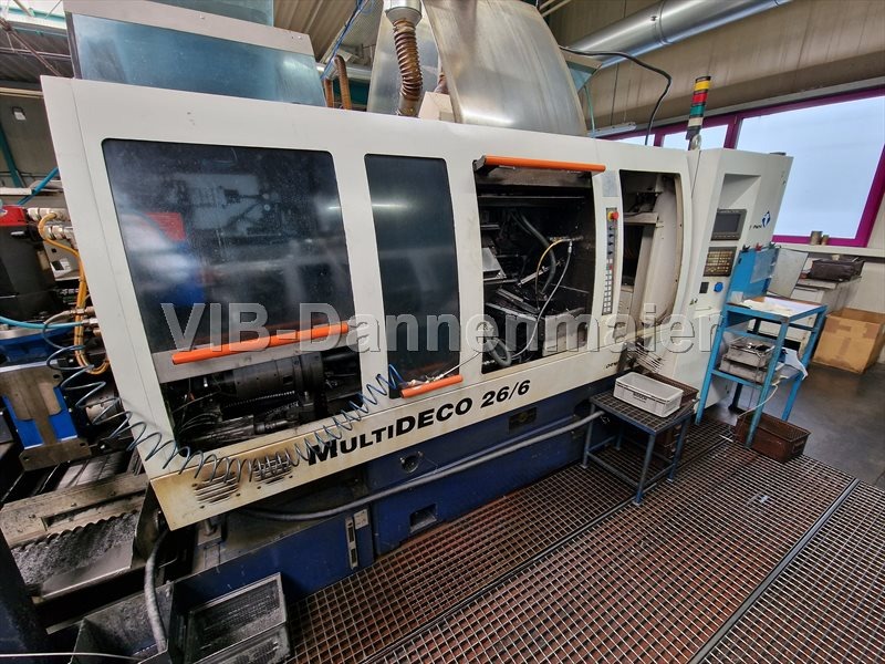 | Multi spindle machines | Tornos | Multideco 26-6 | 2003 | Tornos Bechler FANUC PNC Deco | 6-spindle machine C-axis Spindle stop incl. positioning position 4 Cross slide position 2 to 5 Thread cutting Pick-up spindle Internal cooling Oil treatment Knoll Oil cooler Olear Chip conveyor Robobar loading magazine | ![]() | VIB-Nr: 01-28746 | https://vib-kg.com/usedmachines/tornos_multideco_26-6-01-28746 |