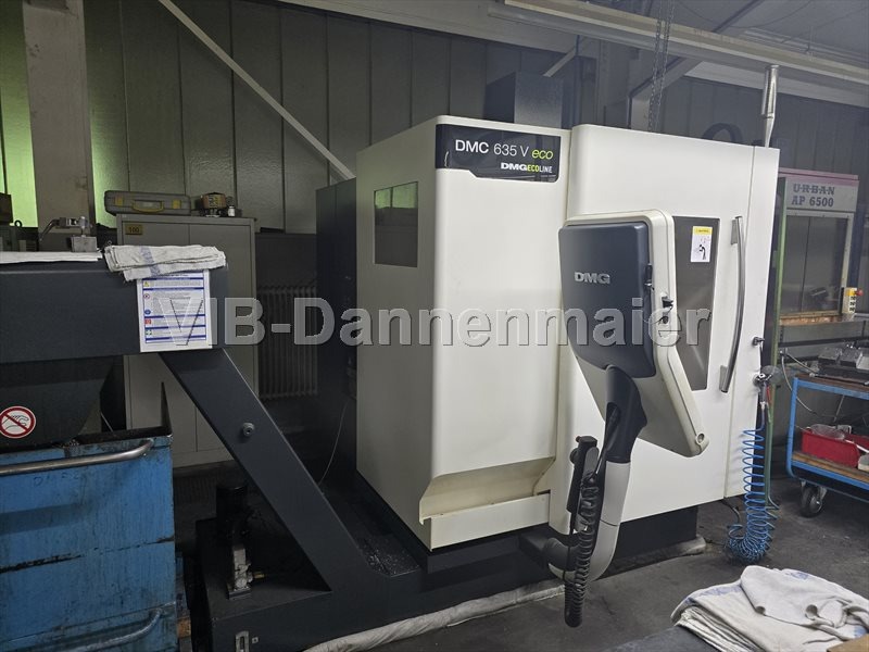 | machining center | DMG | DMC 635 V eco | 2010 | Heidenhain TNC 620 | Clamping surface 790x560mm Travel distances: X 635mm, Y 510mm Z 460mm Spindle speed up to 8000 rpm Tool holder SK 40 DIN6987 20-fold tool changer Chip conveyor Coolant system 3.7 bar DMG TS 649– electronic measuring probe Heidenhain TT140 tool measurement system Lehmann dividing head A-axis FA-510L-485 s/n A756 Four-jaw chuck Vischer & Bolli zero-point clamping system Chip conveyor Chip cart Power connection 400V 50Hz 17 kVA Spindle motor drive power 8.4KW at 100% duty cycle Operating hours 27,119; spindle hours 8,668 Dimensions: Length 3290 mm Width 2920 mm Height 2650 mm Workbench with hand tools, milling and drilling tools Platform trolley for dividing head, tools, and accessories Various tool holders, approx. 36 pieces Various accessories and spare parts | ![]() ![]() ![]() ![]() | VIB-Nr: 01-29294 | https://vib-kg.com/usedmachines/dmg_dmc_635_v_eco-01-29294 |