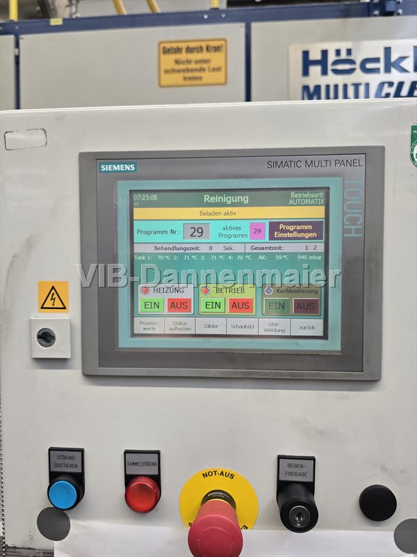 | Cleaning machines | Höckh | Multiclean 2-6-F | 2008 | Siemens | 4-tank system Basket dimensions: 650 x 470 x 310 mm Cleaning medium: PER Roller conveyor Cooling tunnel | ![]() ![]() ![]() ![]() ![]() ![]() | VIB-Nr: 01-29311 | https://vib-kg.com/usedmachines/hoeckh_multiclean_2-6-f_-01-29311 |