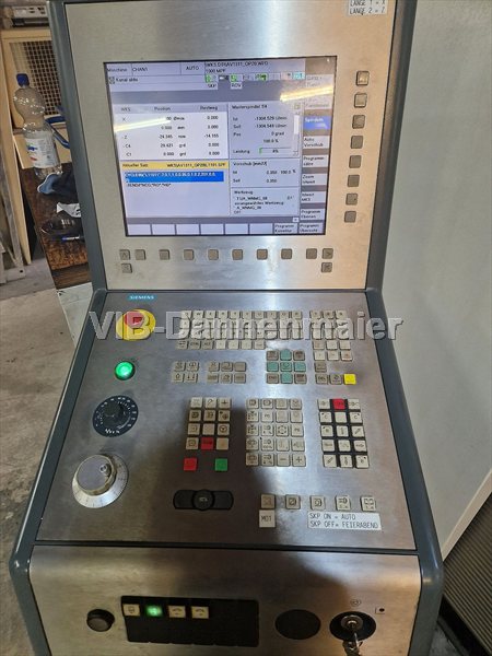 | machining center | Chiron | DZ 12 W | 2020 | Siemens 840 D SL | Double spindle 4 axes plus swivel table Spindle distance 250 mm Axis travel: X 550 / Y 400 / Z 400 mm Spindle speed 24,000 rpm, max. 45 Nm HSK-A50 Fanuc Automation ROBOT M-10IA/12S Chip conveyor Coolant system Tool magazine: 2 x 24 places | ![]() ![]() ![]() | VIB-Nr: 01-29208 | https://vib-kg.com/usedmachines/chiron_dz_12_w-01-29208 |